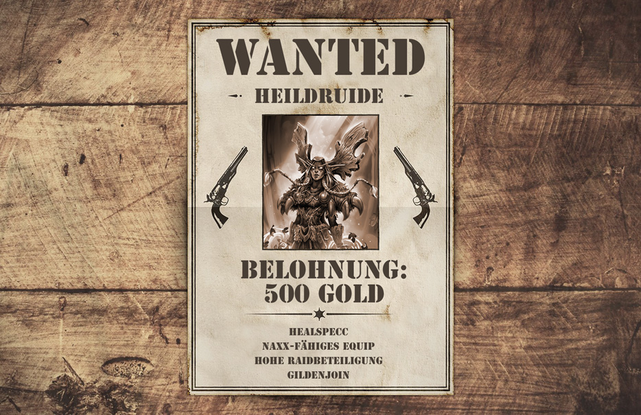 Wanted: Heildruide! 500g Belohnung für die Vermittlung eines fähigen, langzeitmotivierten und nachtaktiven Heildruiden mit Bock auf Naxx! Folgende Kriterien müssen erfüllt sein: