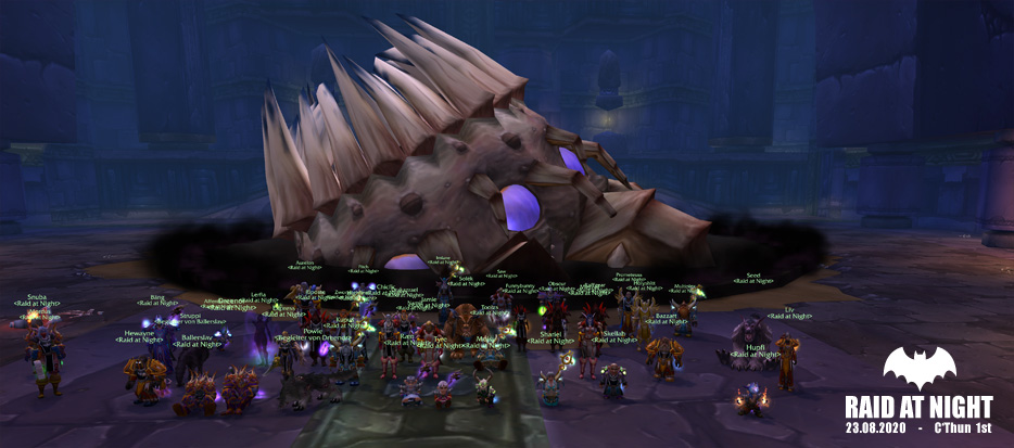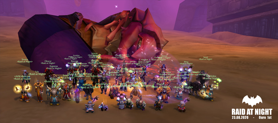 C’Thun liegt im dritten Try und nach ein paar Stellproben. Hat irgendwie weniger Life als vor 15 Jahren… Ouro fällt etwas überraschend gleich im ersten Versuch – das ist fast schon etwas enttäuschend, war das Vieh in Vanilla doch ne echte Herausforderung.
