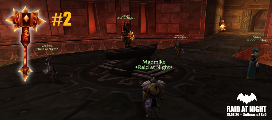 Das war mal ein legendärer Run heute! Neben Fesseln des Windsuchers und Fesseln des Windsuchers droppt auch unser zweites Auge von Sulfuras. Herzlichen Glückwunsch an unseren Retri Daryon und viel Erfolg mit Sulfuras, Hand von Ragnaros! Sulfuras #1 wird dann nach dem Urlaub des Trägers geschmiedet.