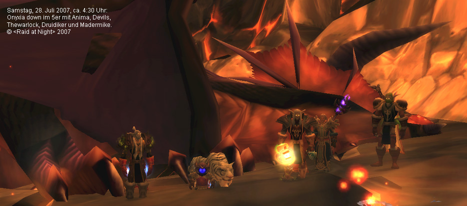 NewsByMadmike 28. Juli 2007 Ca. 4:30 Uhr: Onyxia down im 5er mit Anima, Devils, Thewarlock, Druidiker und Madermike.