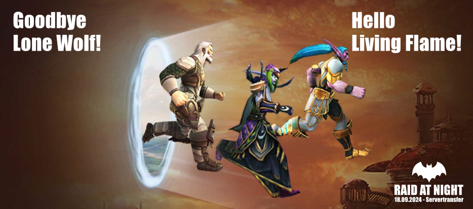 Ok, war nett auf Lone Wolf… Aber Blizz will, dass jetzt alle auf nem Megaserver spielen. Wir sind also mit Sack und Pack allesamt nach Living Flame umgezogen.