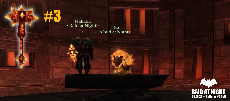 Der Lootgott ist uns gewogen! Heute konnten wir schon unser drittes Auge von Sulfuras in Sulfuras, Hand von Ragnaros umwandeln! Zudem ist auch der Träger von #1 aus dem Urlaub zurück und konnte das Ding endlich schmieden. Herzlichen Glückwunsch an Lika und Häbäbä zum Legendary!