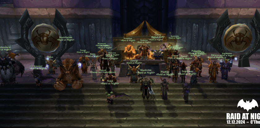 Wie immer startet Donnerstags um 22:00 Uhr der neue Content. Nach Discord Ausfall starten wir mit 20 Minuten Verspätung mit zwei 20er Raids ins neue Abenteuer. Tuning ist tough, so dass wir nach vielen Balnazzar Trys die Raids zusammenlegen. Das klappt dann auch leidlich. Durch die hohe Trash-HP reichts beim zweiten Boss dann leider nur…
