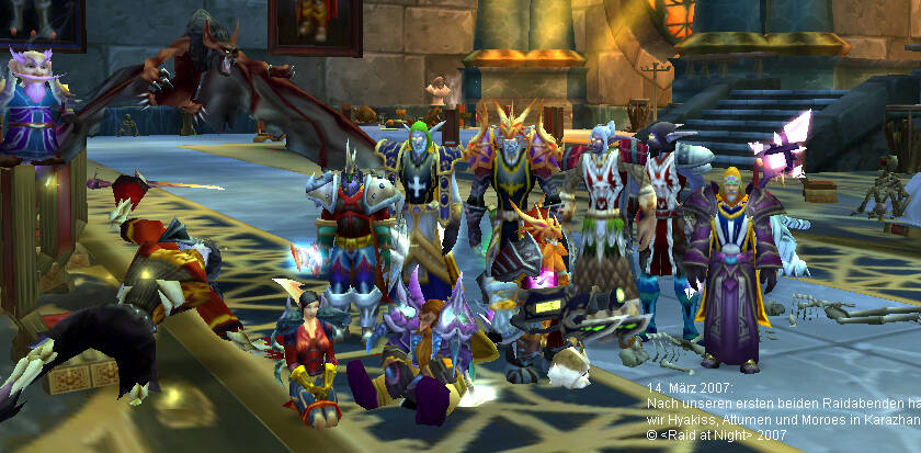 3 Bosse in Kara geschafft News14. März 2007Nach unseren ersten beiden Raidabenden haben wir Hyakiss, Attumen und Moroes in Karazhan down.Read More