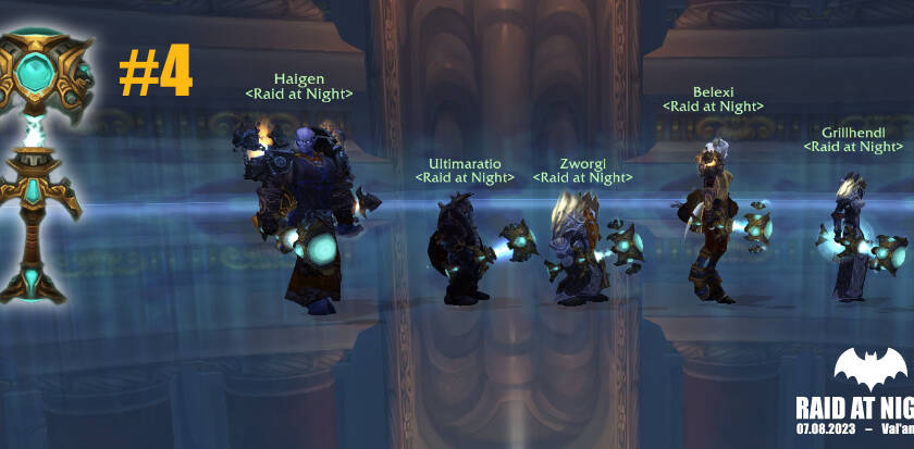 Heute Nacht konnten wir unseren vierten legendären Heilerhammer Val'anyr, Hammer der Uralten Könige fertigstellen! Herzlichen Glückwunsch an unseren Heilpriester Zworgi! Insgesamt haben wir jetzt fünf von den Dingern im Einsatz. Mal sehen, ob wir es noch schaffen, alle unsere Healer mit der Wunderwaffe auszurüsten...
