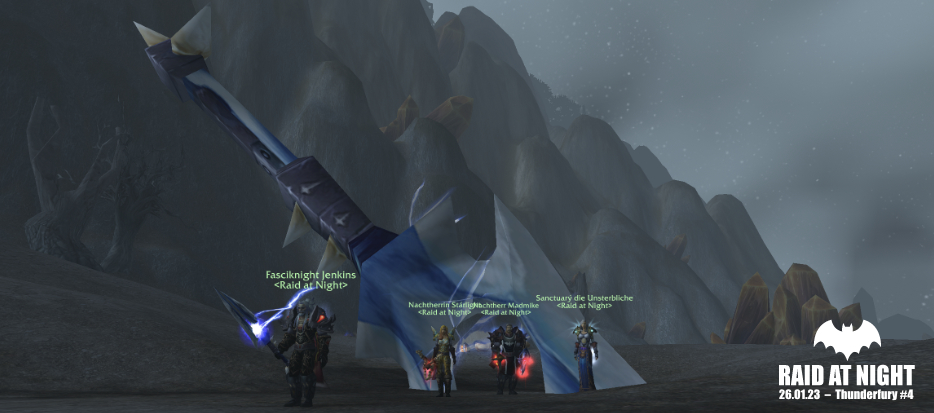 Unser erster Todesritter mit Donnerzorn, Gesegnete Klinge des Windsuchers! Herzlichen Glückwunsch Fasciknight! Fleissig – teilw. solo – in MC gefarmt und mit seltenem Dropglück belohnt. Das legendäre Schwert erstrahlt in der Hand eines DKs farblich in ganz neuen Farbvariationen – nice! Ach ja: Wann wurde eigentlich das Model von „Prinz Donneraan“ geändert? Der sah doch immer aus wie Ragnaros in Grau…