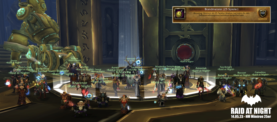Mit dem „Brandmeister“ haben wir einen der schwersten Hardmodes in Ulduar geschafft. Durch den Mimiton Kill konnten wir auch mehrere Alagalon Keys fertigstellen. Der Zusatzboss darf sich also demnächst über unseren Besuch freuen. Bei den HMs fehlt jetzt nur noch Yogg.