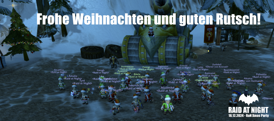 Alle Jahre wieder… feiert RaN Weihnachten mit einem Spezialevent. 2024 mit einer „Schnitzeljagd“ quer durch Azeroth. Bis zum Zieleinlauf auf dem Flugfeld Ironforge gab’s für die Teams viel zu entdecken… mehr dazu bald im Video. Wir wünschen allen Raidern, Friends und SoD-Spielern ein frohes Weihnachtsfest und guten Loot unterm Christbaum!